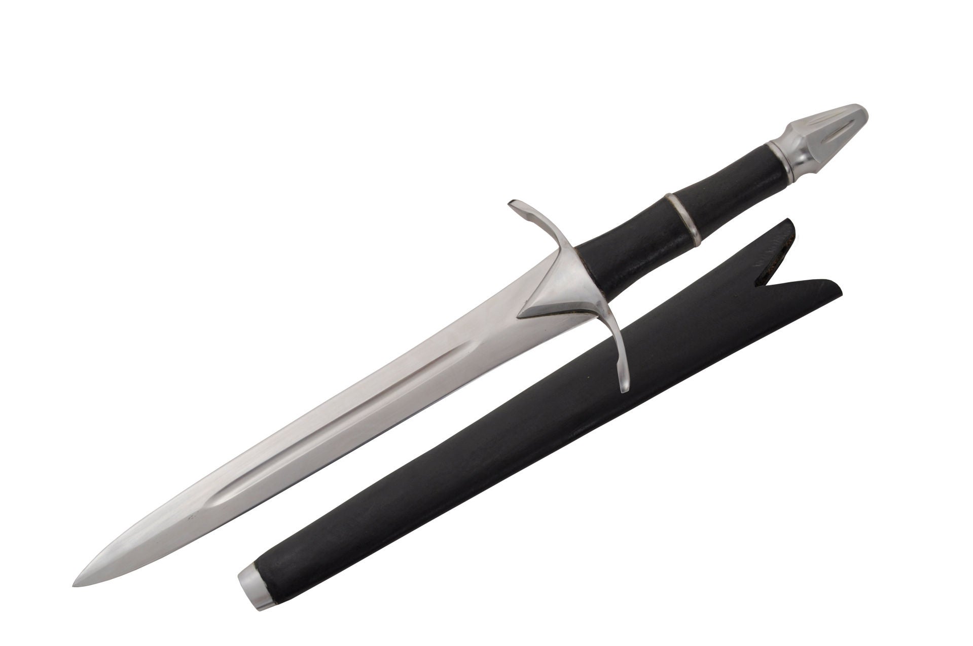 dit is de dagger , een middeleeuws mes je hebt 2 en 1 kant geslepen en heel veel soorten van goude tot houte hands vaten van de daggers heb je (geen) 2 hands